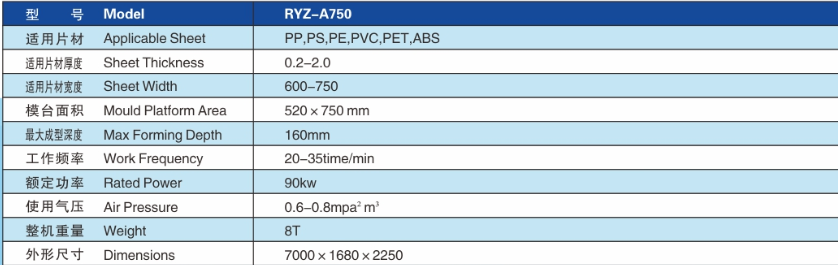 RYZ-750系列全自動(dòng)液壓制杯機(jī)是我司開(kāi)發(fā)研制的高速度,高效率的全自動(dòng)塑料容器的成型機(jī)。該機(jī)適用于生產(chǎn)PS,PP,PVC,PET,ABS等塑料片材